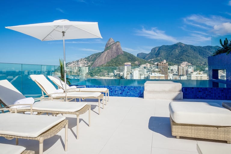 A stunning rooftop infinity pool overlooking Ipanema Beach